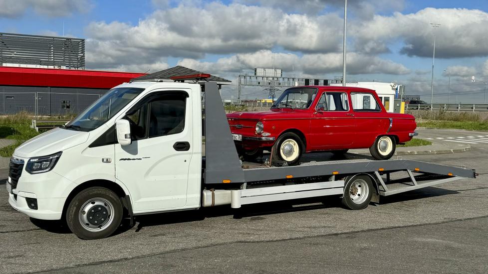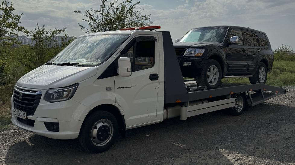 Эвакуатор Газель Некст в городе Воронеж с ломаной платформой, подкатными и лебедкой