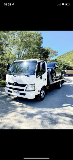 Эвакуатор Hino 300 в г. Новороссийск с ломаной платформой,лебедкой и подкатными.