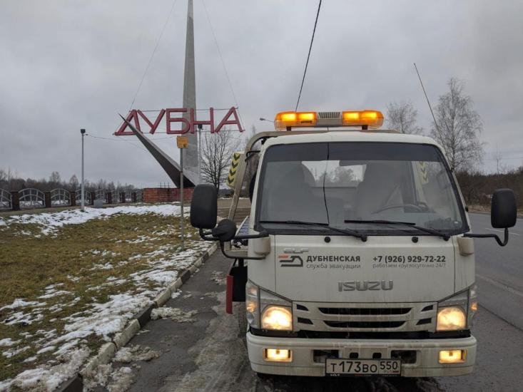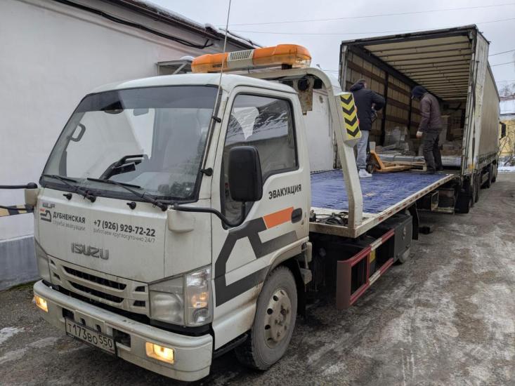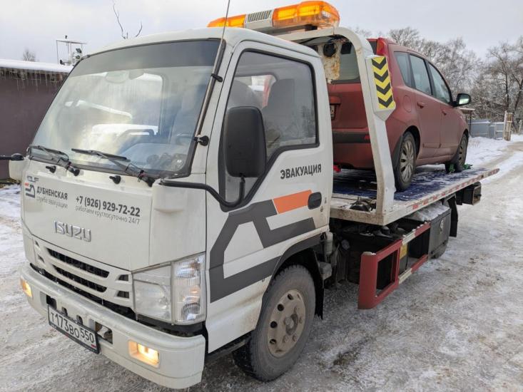 Эвакуатор Isuzu ELF в г. Дубна со сдвижной платформой, лебедкой и частичной погрузкой