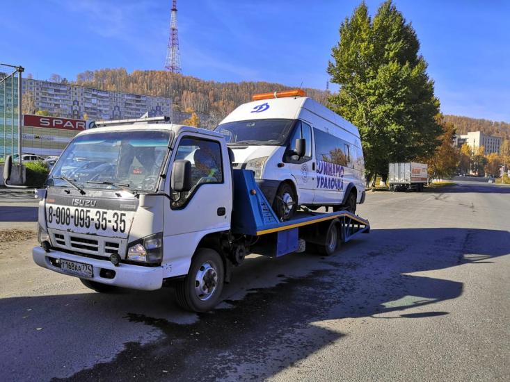 Эвакуатор Isuzu NQR в г. Миасс с лебедкой и подкатными, манипулятором и ломаной платформой